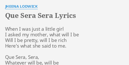 Que Sera Sera Lyrics By Jheena Lodwick When I Was Just