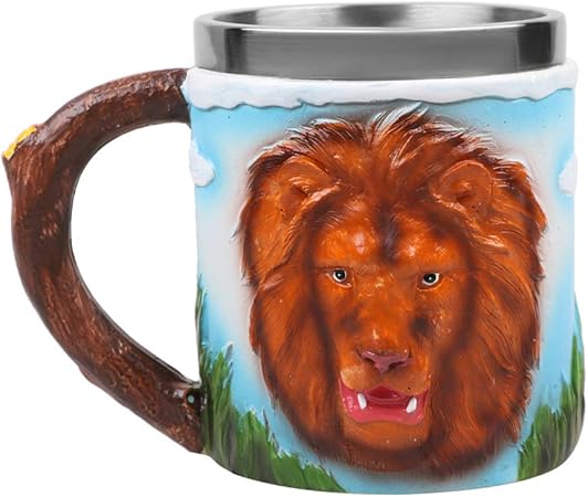 JINGXI Edelstahl Löwenkopf Schädel Becher, Harz gemalt schnitzen, Neuheit Kaffeetasse Becher, Kindertrinkbecher Geschenk für Kinder: Amazon.de: Küche & Haushalt